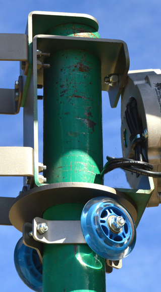 Furling bracket helps slow down turbines in high winds.