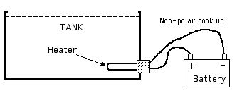 direct connection to battery. Heats water instantly and for about 12 hours