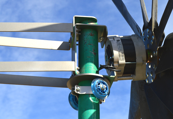 Furling bracket helps slow down turbines in high winds.