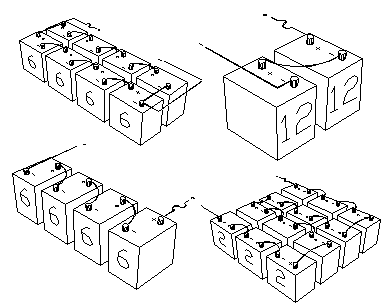 How to make a 12 volt battery bank out of 6 and 12 volt battery combinations.